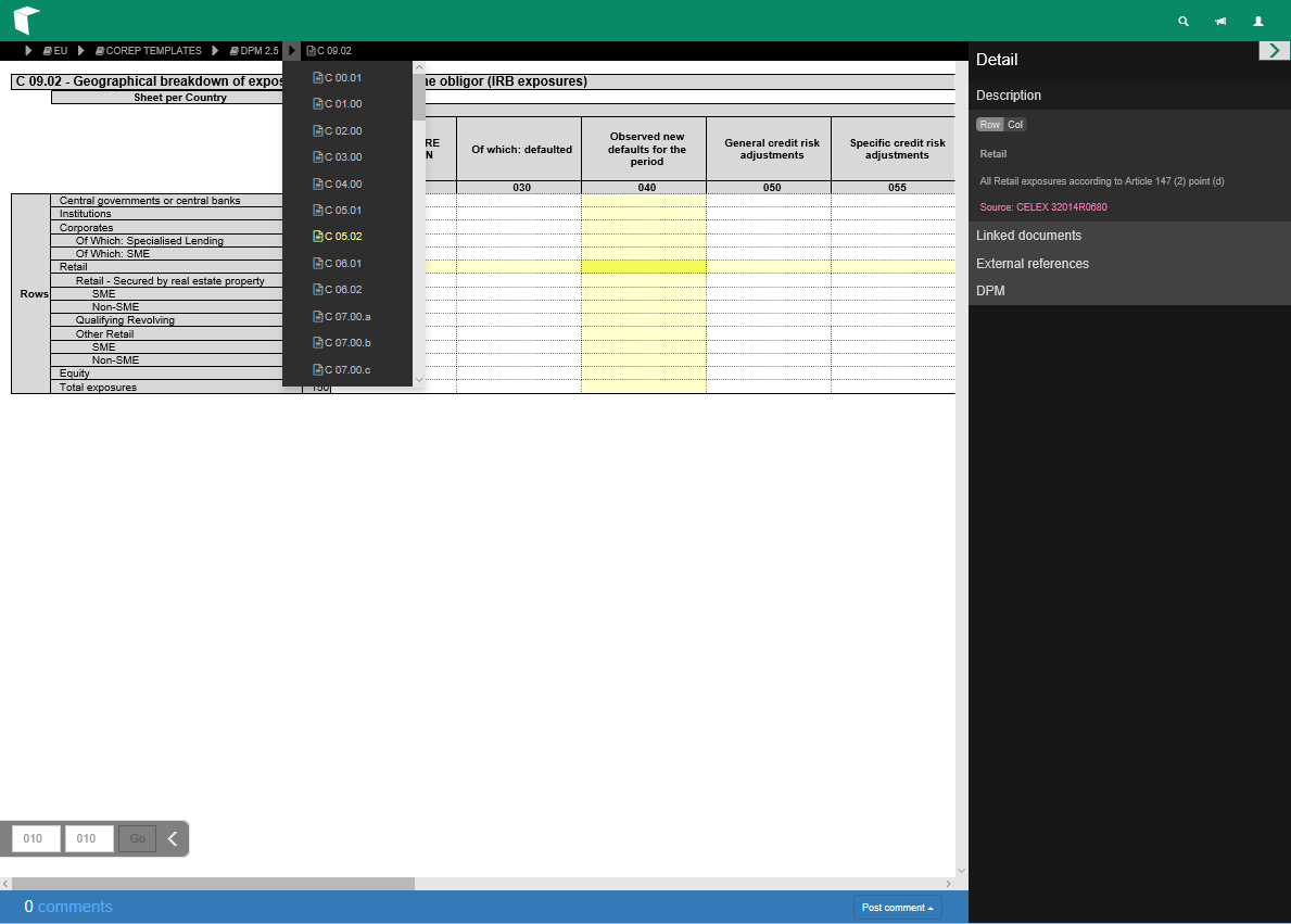 - users could annotate COREP DPM forms - rows, columns, or individual cells?