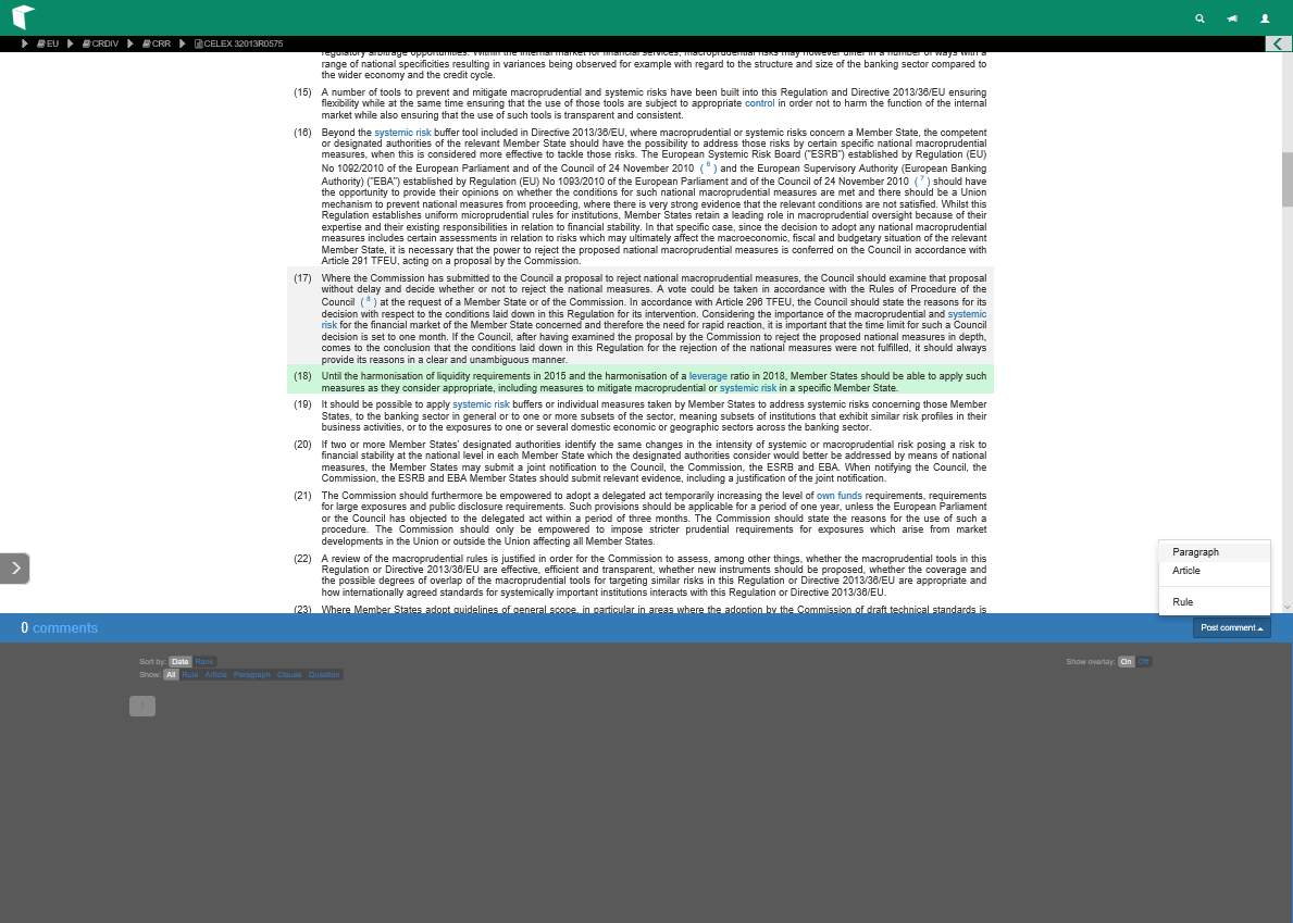 - users could annotate regulatory documents, share their comments and respond to each other?